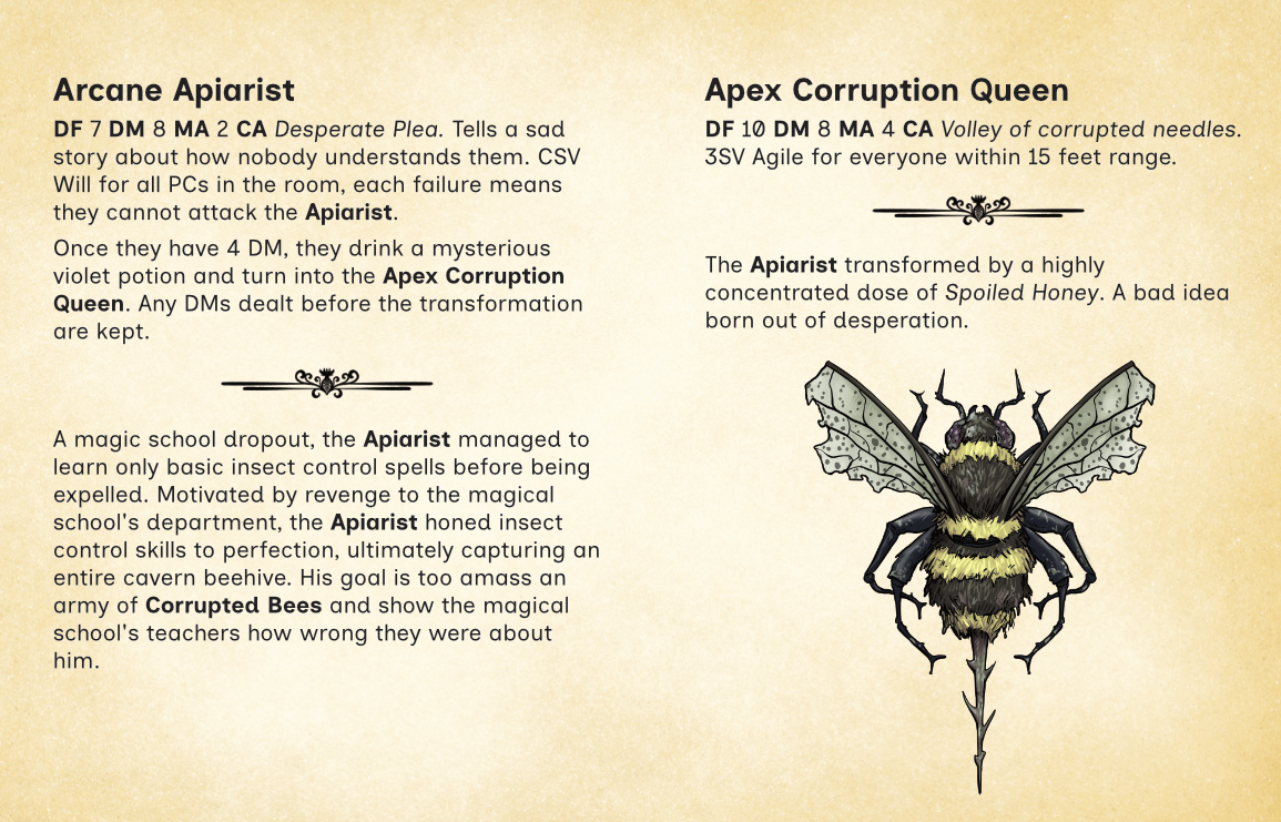 “Trouble in the Bee Cavern” is a one-shot adventure designed for Fängelsehåla TTRPG system. It is also compatible with other OSR-style systems like Shadowdark and Knave. It was originally made for Fun with Fang Adventure Jam.
